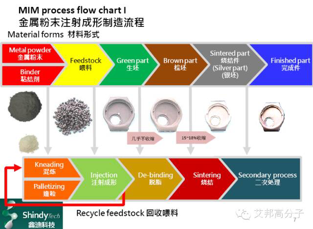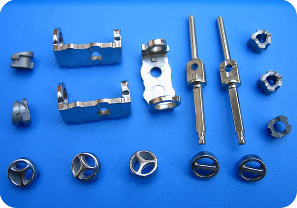 MIM作為一種制造高質量精密零件的近凈成形技術,具有常規和機加工方法比擬的優勢。MIM能制造許多具有復雜形狀特征的零件:如各種外部切槽,外螺紋,錐形外表面,交叉通孔、盲孔,四臺與鍵銷,加強筋板,表面滾花等等,具有以上特征的零件都是無法用常規粉末冶金方法得到的。由于通過MIM制造的零件幾乎不需要再進行機加工,所以減少了材料的消耗,因此在所要求生產的復雜形狀零件數量高于一定值時,MIM就會比機加工方法更為經濟。